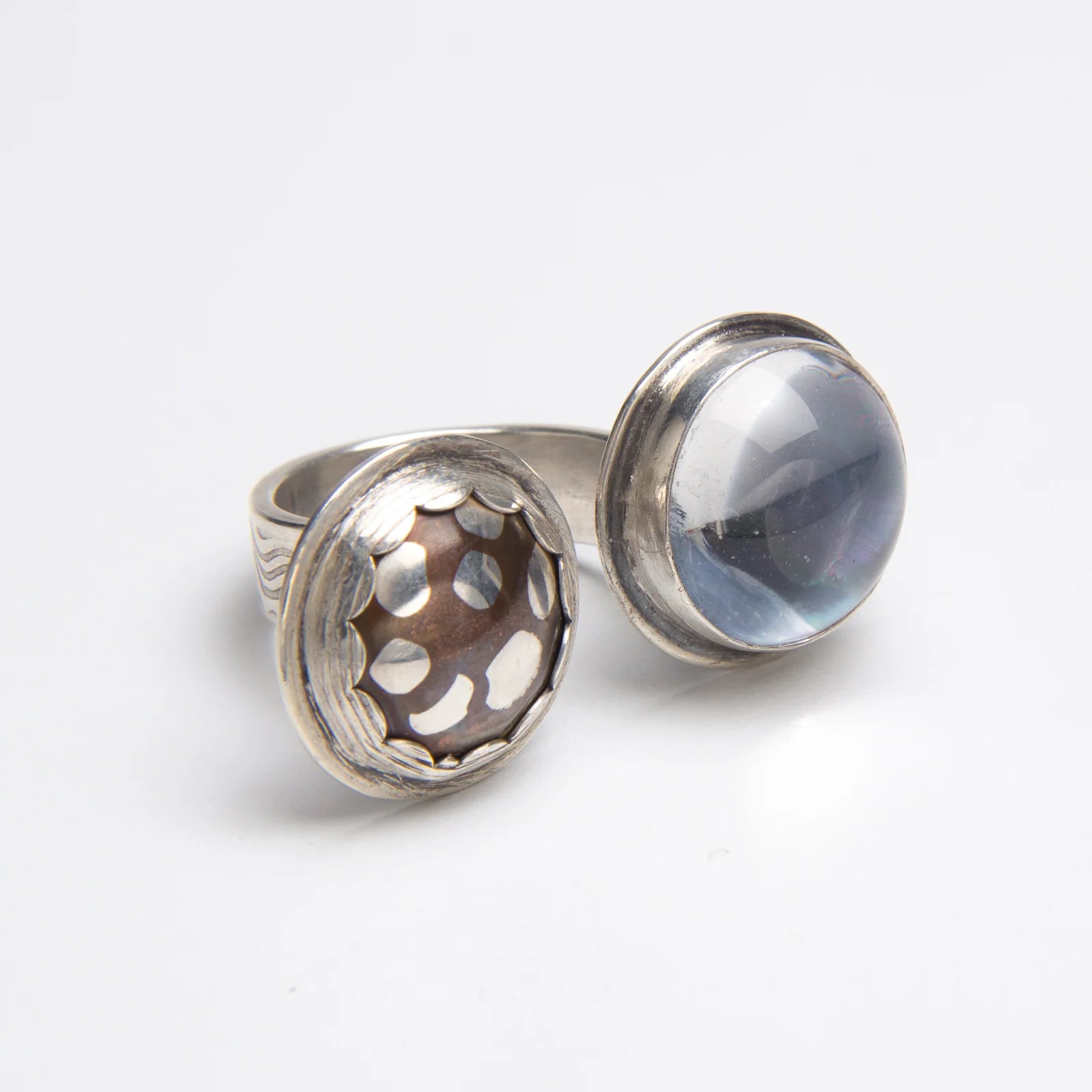 Featuring mokume gane material created by Phillip Baldwin of Shining Wave Metals, whose memory was recently celebrated by the Seattle Metals Guild in a show of work featuring his material creations.
